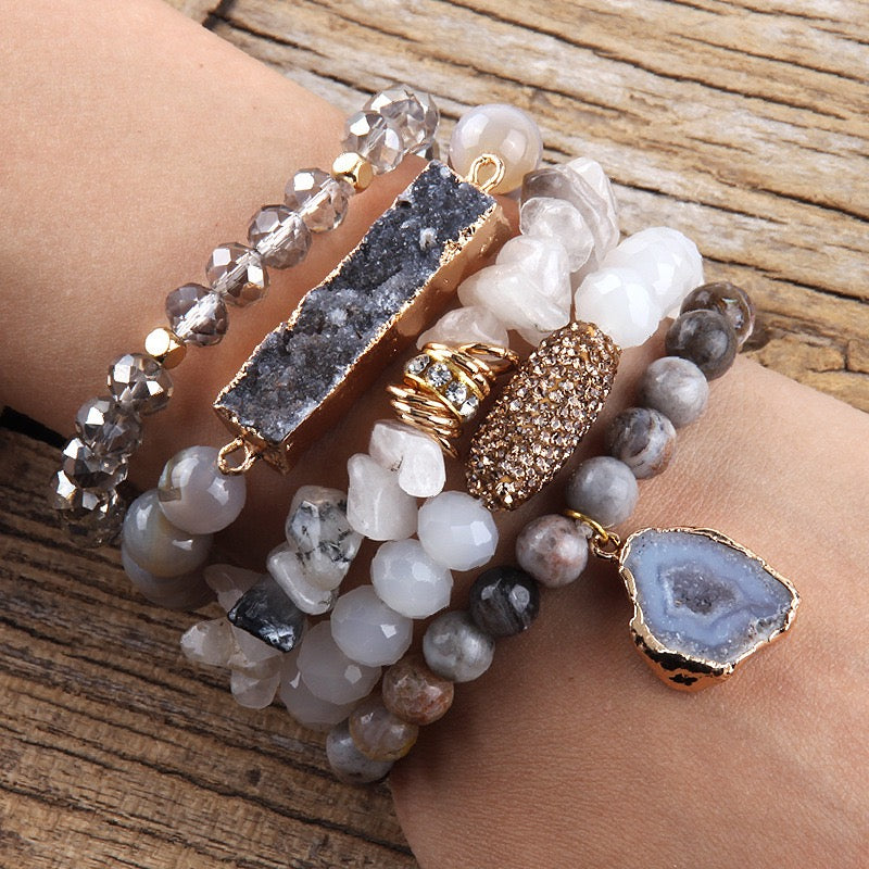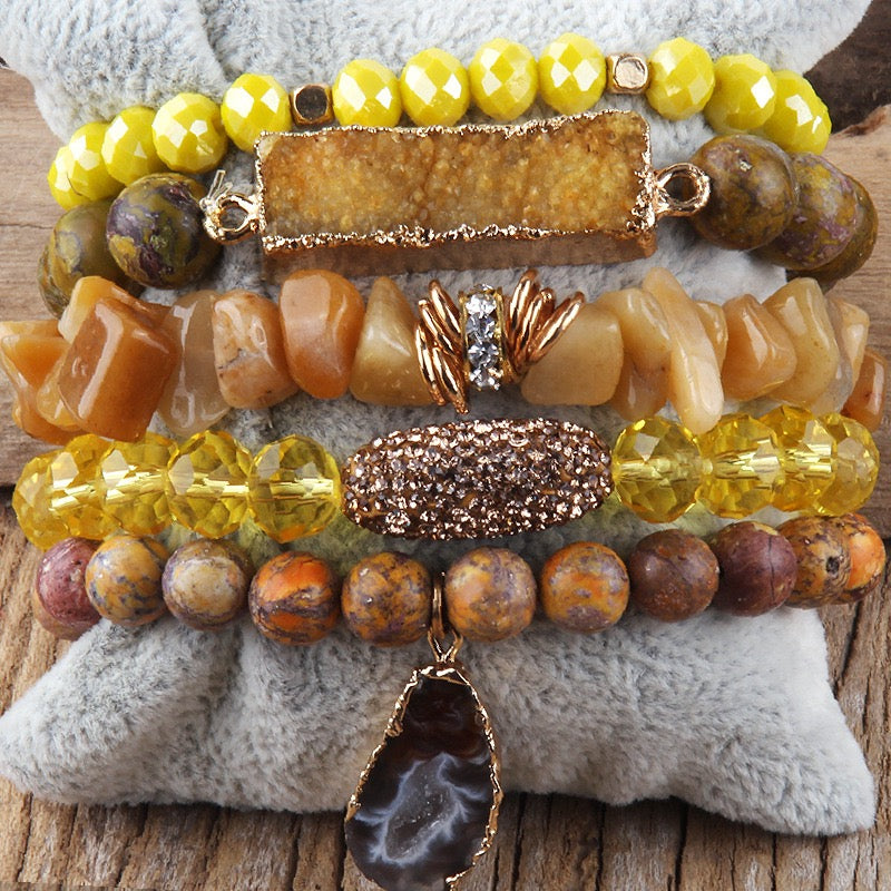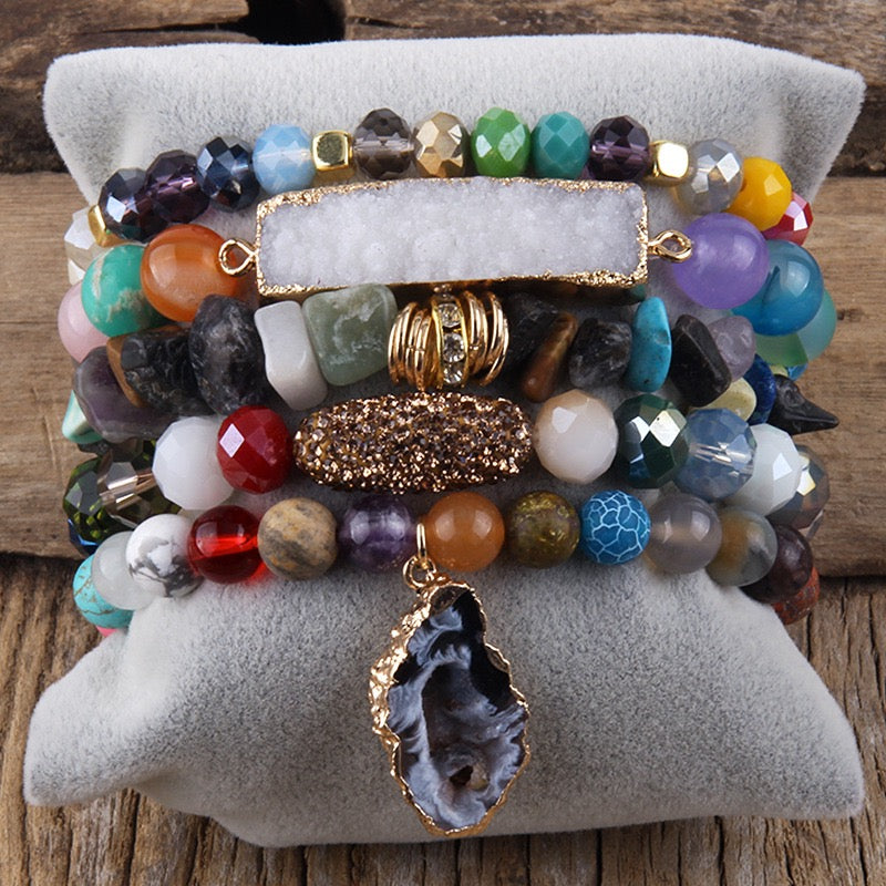Bohemian Crushed Stone Stack Bracelet